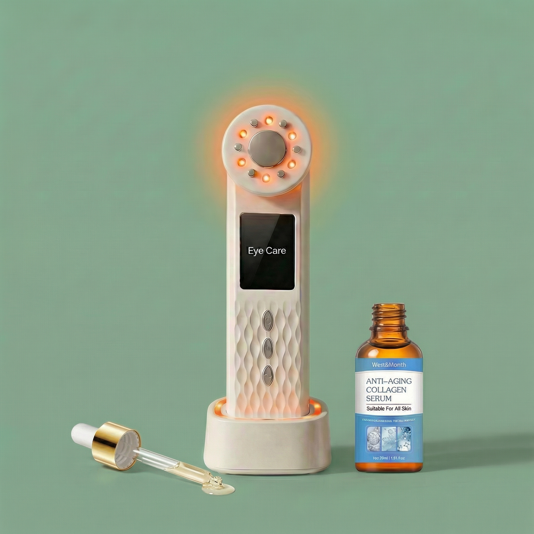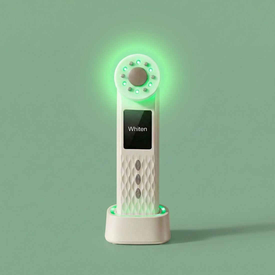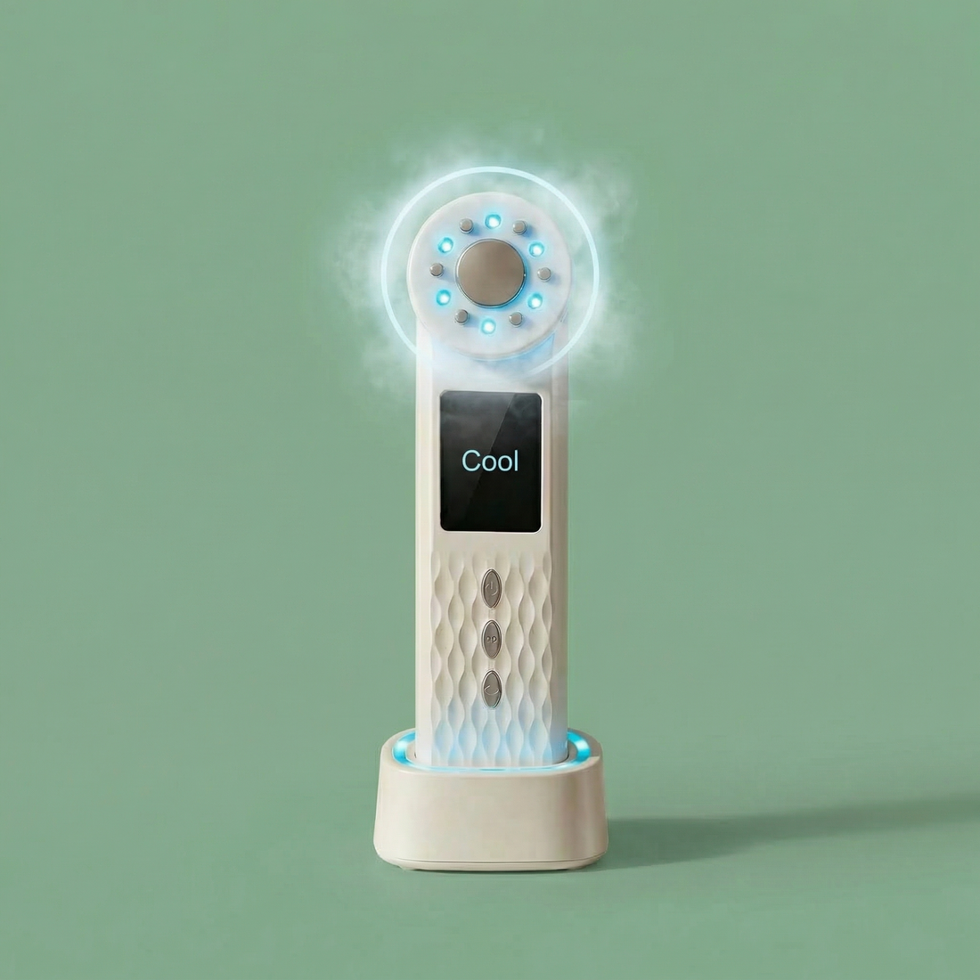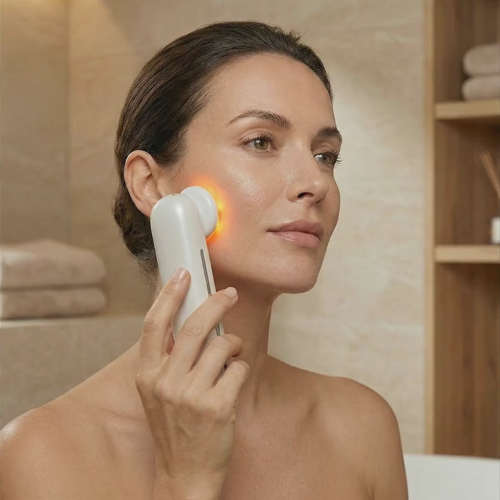 Advanced multi-technology facial system designed to support firmness, contour definition, and skin vitality — safely and progressively at home.