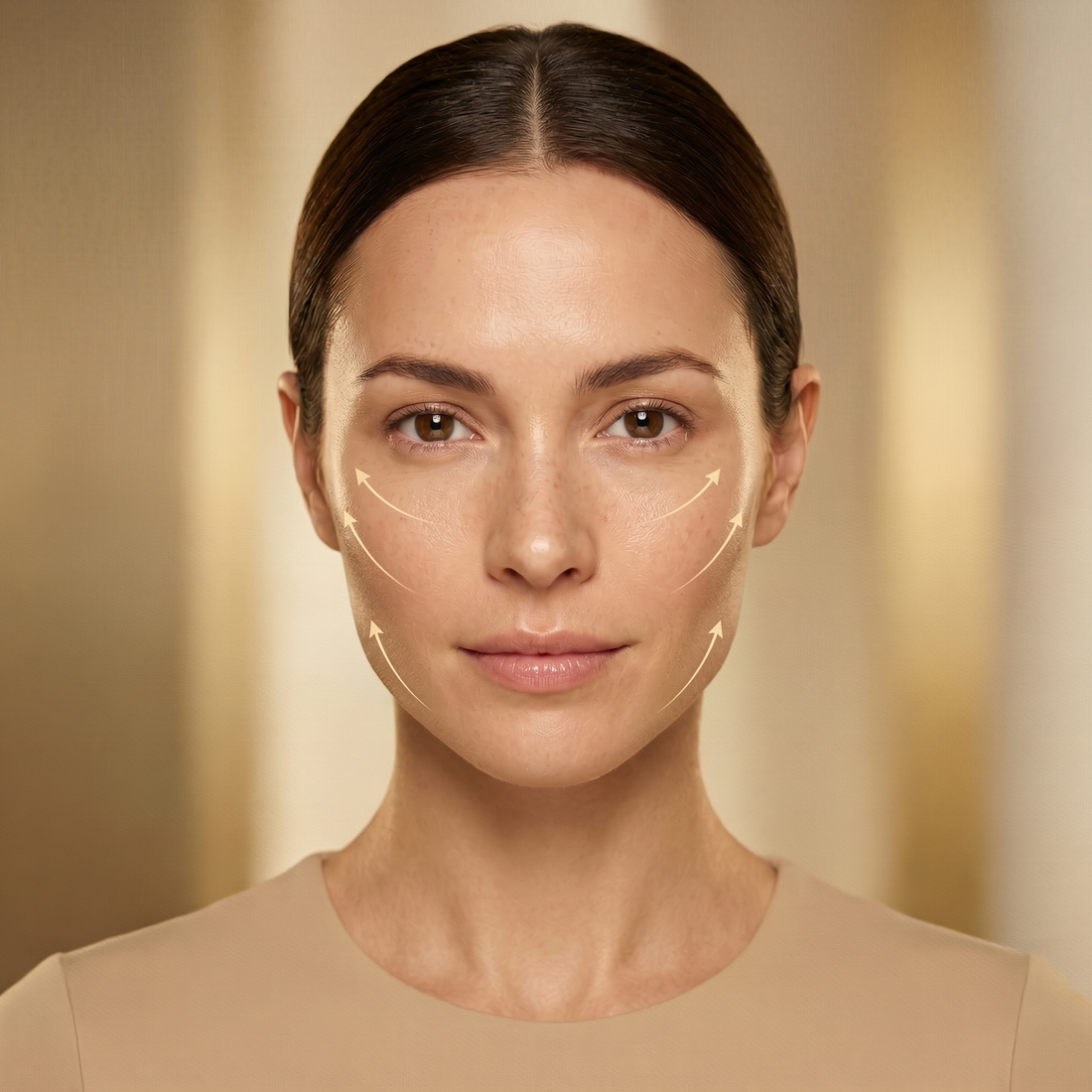 Multi-technology sessions (RF + EMS + micro-current + LED + cooling) designed to support firmness, definition, and a more balanced-looking complexion.